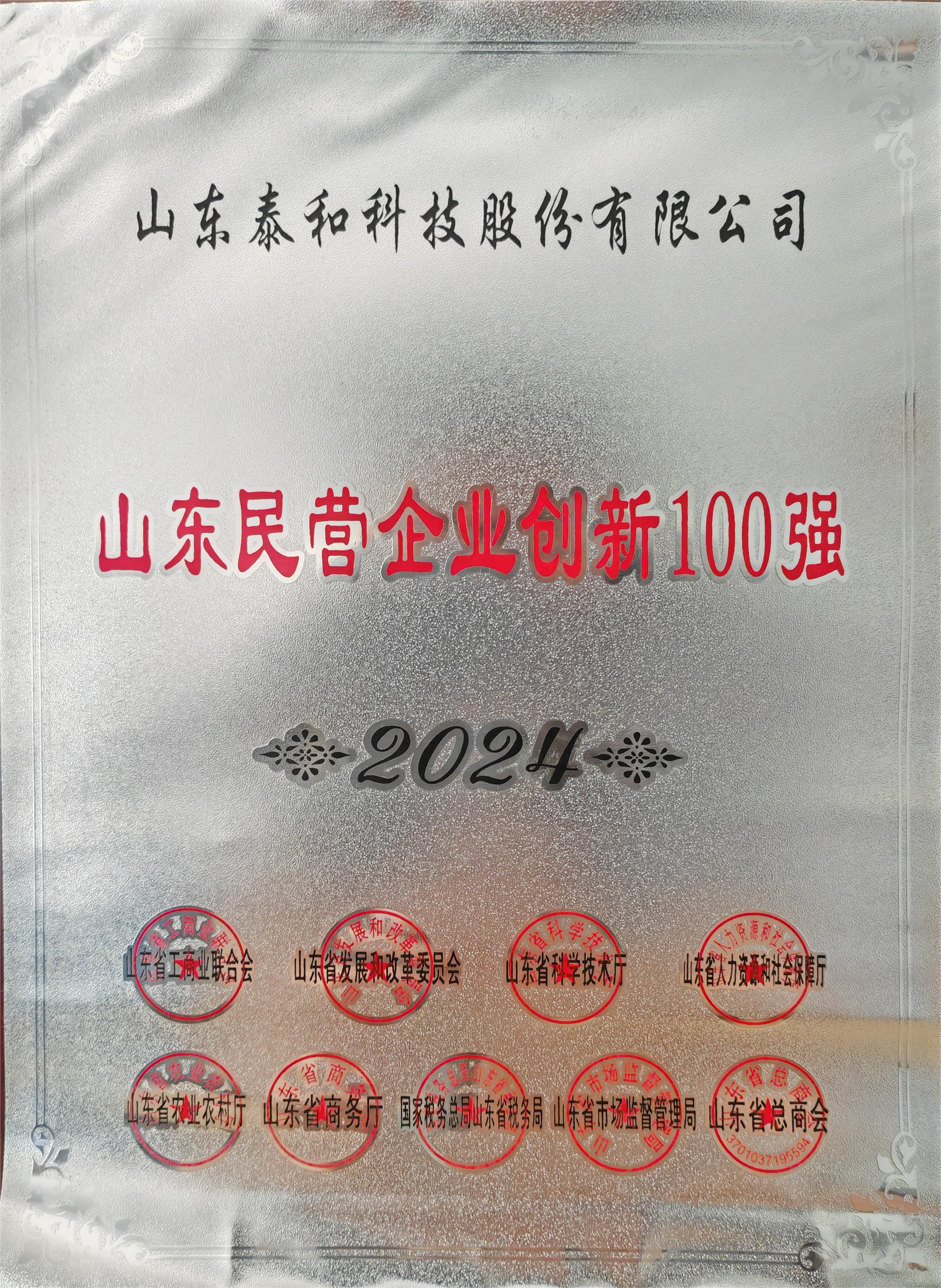 2024山東民營(yíng)企業(yè)創(chuàng)新100強(qiáng)