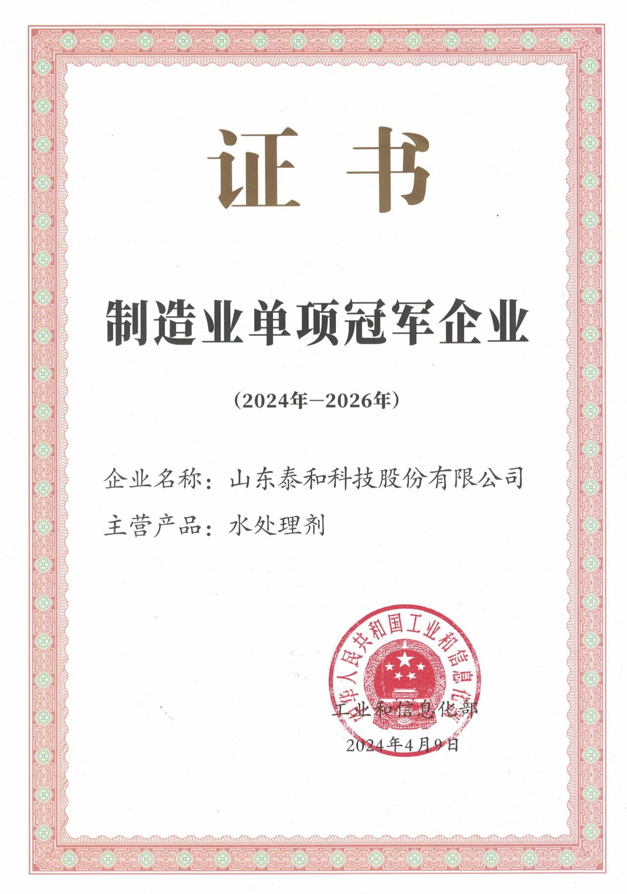 國(guó)家級(jí)制造業(yè)單項(xiàng)冠軍示范企業(yè)